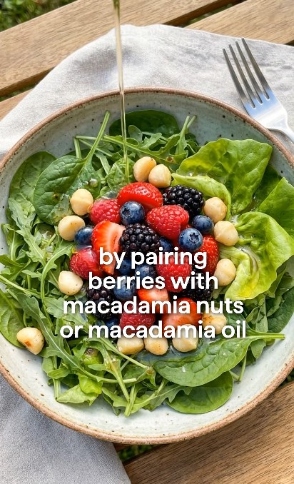 - Berry salad: Lightly drizzle macadamia nut oil over mixed berries and finish with fresh mint or a sprinkle of crushed nuts.